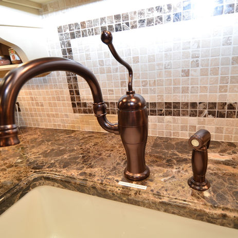 Let our experienced and friendly staff help you decide which faucet style will fit your kitchen design and cooking needs best. Our faucets are available as one handle, two handle, pull out spray, pot filler and many other styles to choose from along with kitchen accessories such as soap dispensers, sink drains and side sprays to name a few.